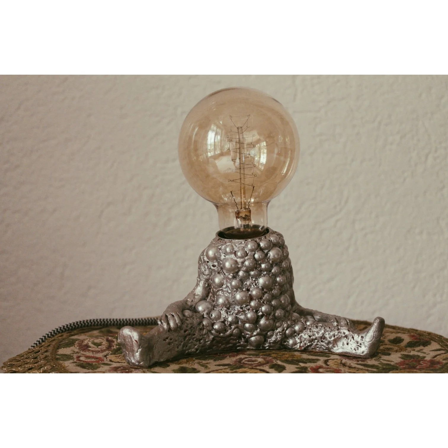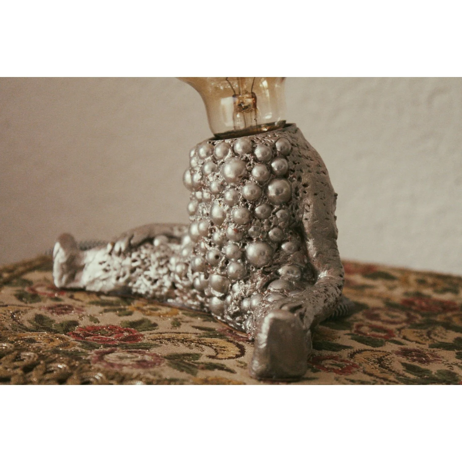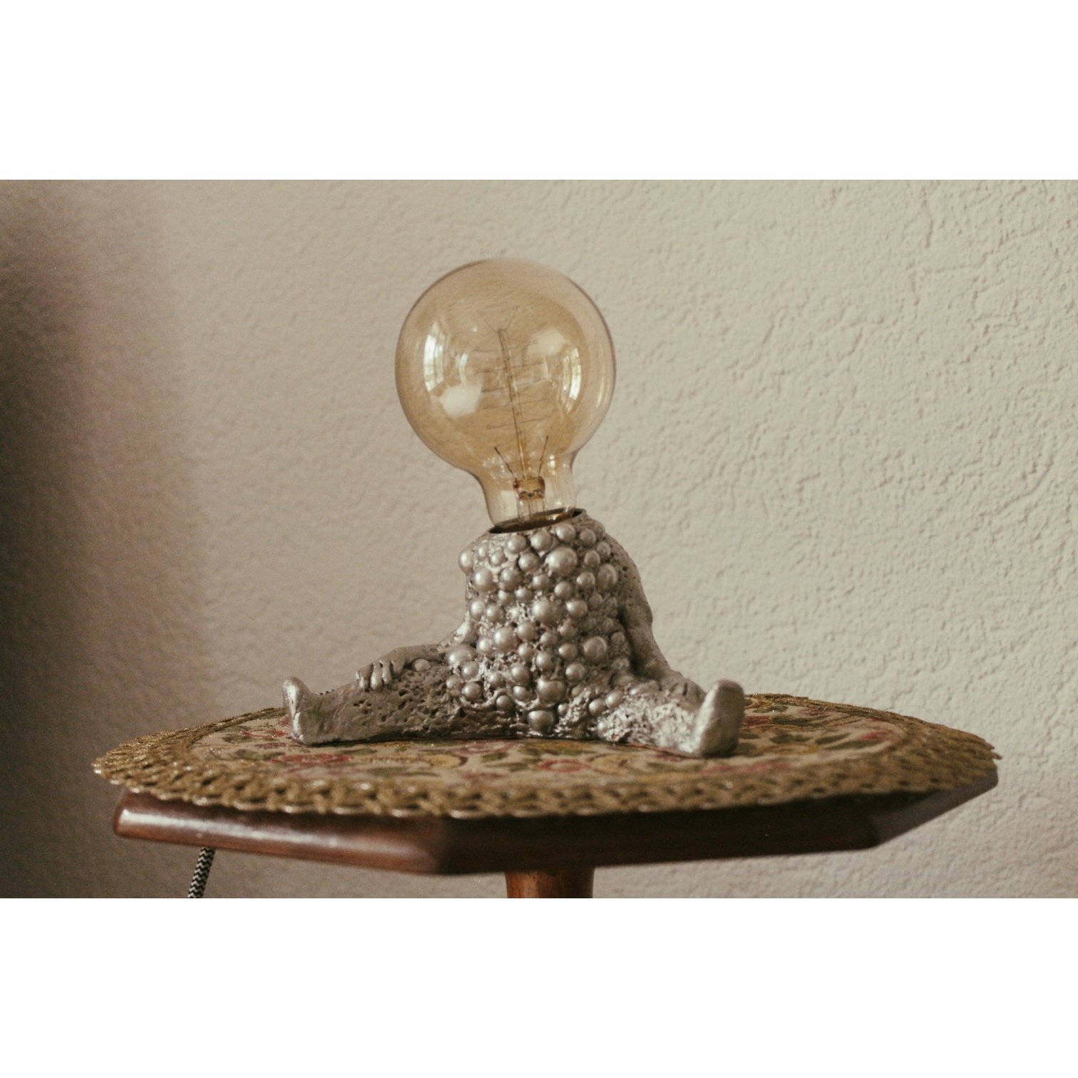 handcreated lamp,clay-body sculpture with pearls in 2021 | handgefertigte Lampe mit einer Skulptur aus Ton und Perlen hergestellt 2021